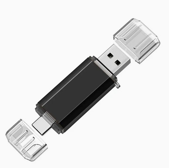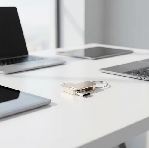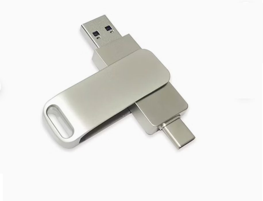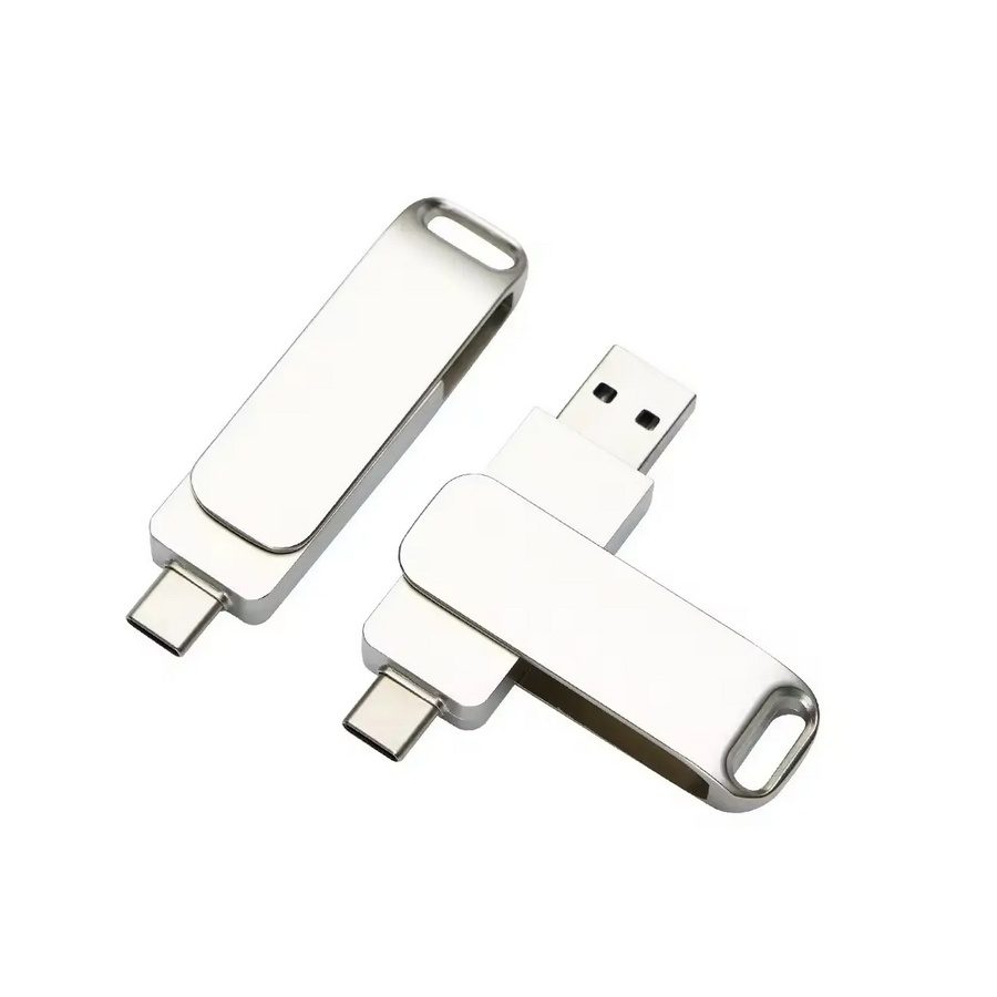 Clé USB en métal, élégante, avec double interface USB‑A et USB‑C pour un transfert de fichiers facile entre appareils. Dimensions de l'article: 59 × 17 × 10 mm (2.32" × 0.67" × 0.39").