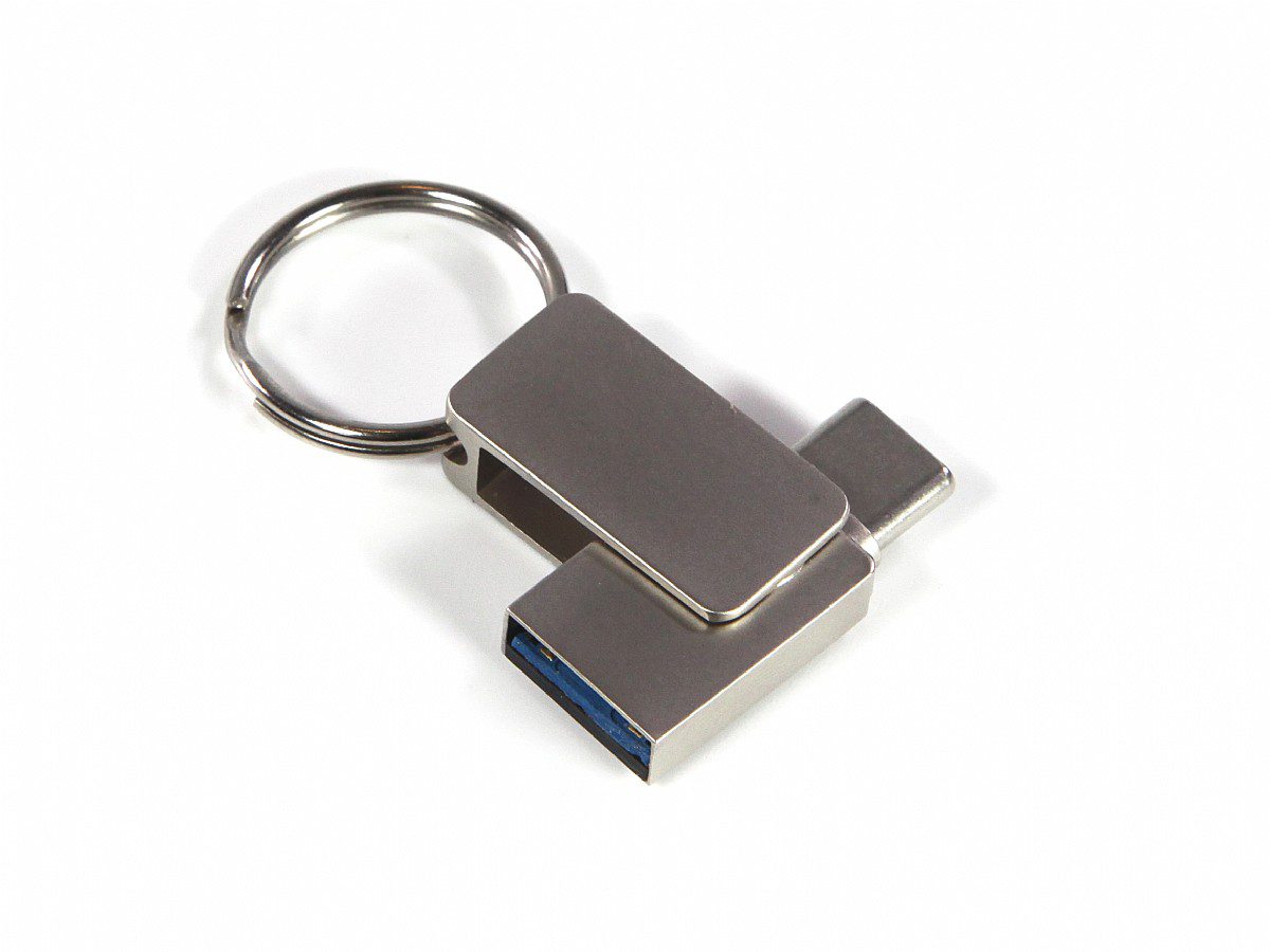 Grâce à ses deux connecteurs, cette mini clé USB métallique pivotante vous permet de libérer de l’espace sur votre smartphone ou votre ordinateur portable, ou encore de transférer facilement des fichiers entre plusieurs appareils. Connecteurs Type‑C et Type‑A. Dimensions: 33 x 12 x 7 mm (1.30″ x 0.47″ x 0.28″).