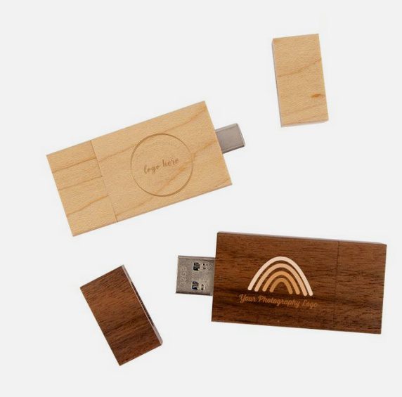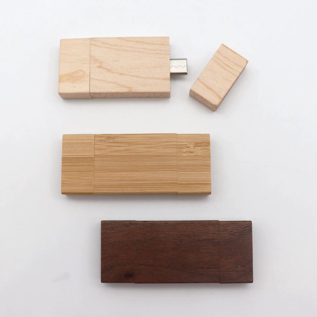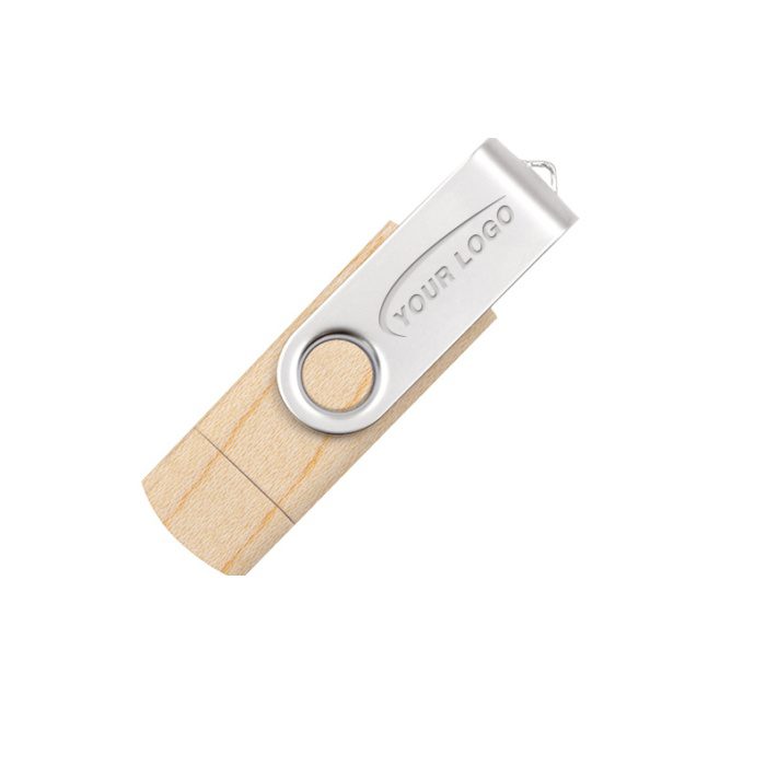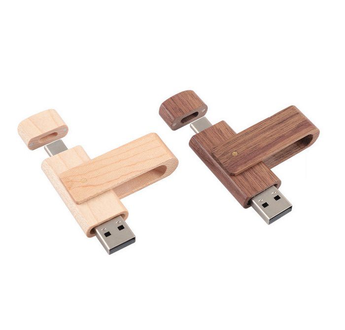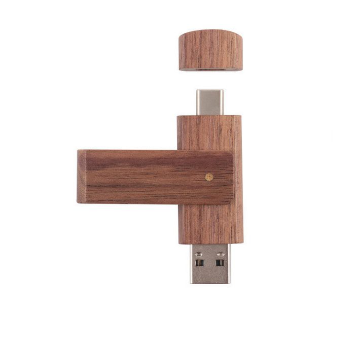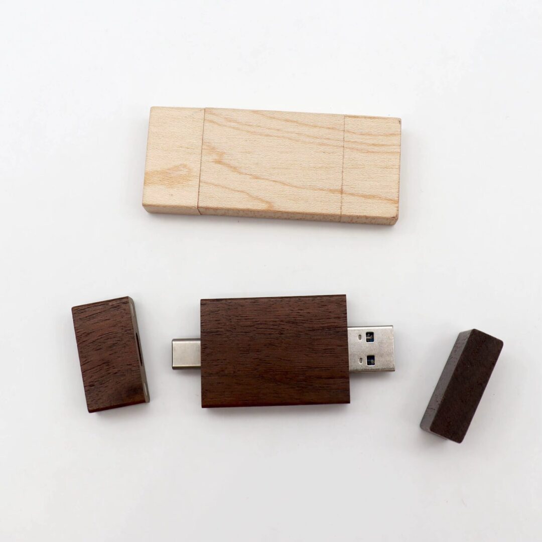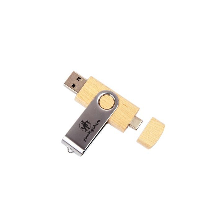 Clé USB pivotante unique en bambou ou en bois, dotée de deux connecteurs — Type‑C et Type‑A — pour une utilisation polyvalente. Conçue pour offrir des performances haute vitesse et une capacité de stockage complète, elle allie fonctionnalité et style écoresponsable. Dimensions: 72 x 19 x 11 mm (2.84″ x 0.75″ x 0.43″).